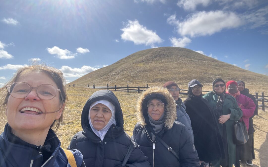 På lätt svenska, på lätt engelska, med gester, med översättningsappar på telefonerna och med engagerad tolkning till varandra har vi försökt förstå vad det är vi ser. Hur gamla är de här högarna egentligen? Varför begravda man människor med stora kullar? Och får man gå upp på högarna?